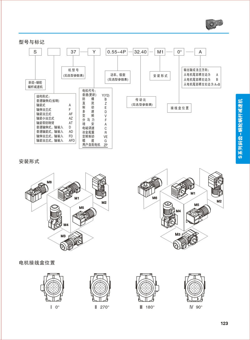 安裝形式 >> S系列斜齒-蝸輪蝸桿減速機(jī)-