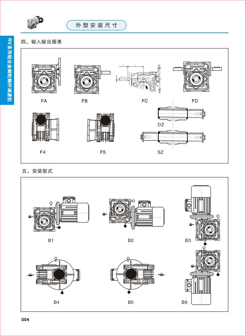 安裝形式 >> RV系列鋁合金蝸輪蝸桿減速機(jī)-