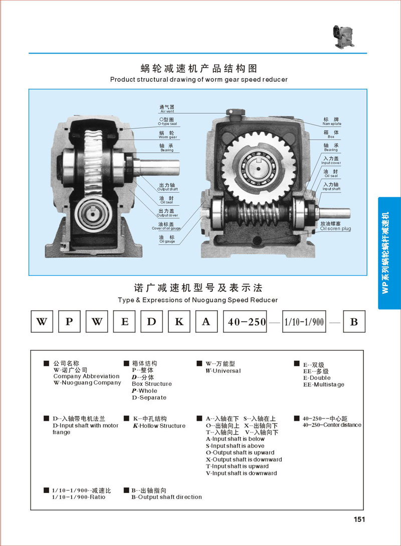 產(chǎn)品參數(shù) >> WP系列蝸輪蝸桿減速機(jī)-