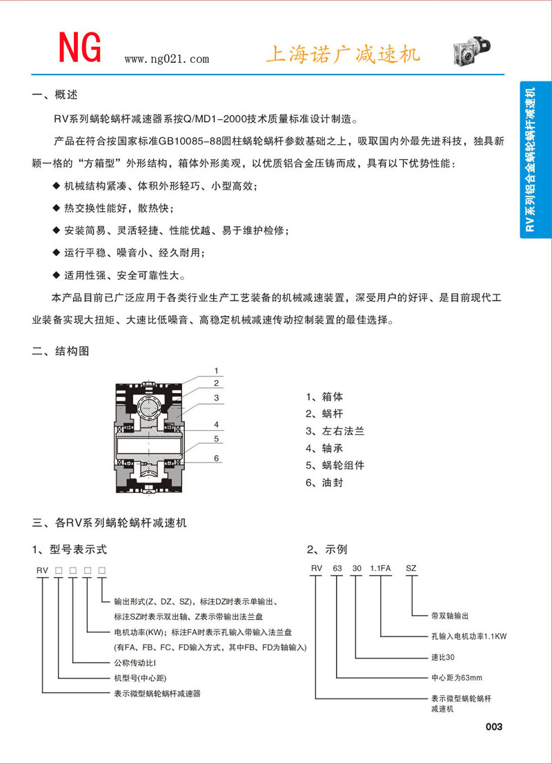 產(chǎn)品參數(shù) >> RV系列鋁合金蝸輪蝸桿減速機(jī)-